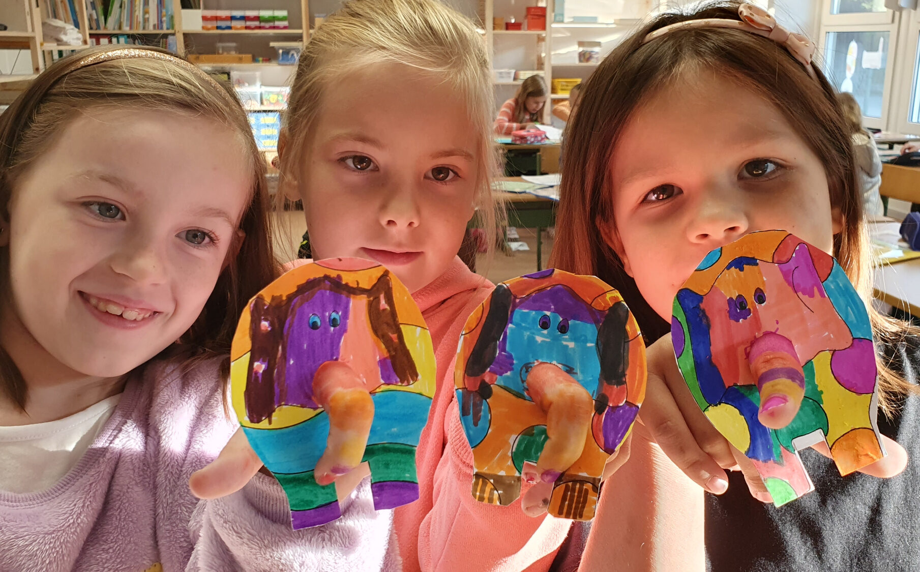 Sie lasen zuerst das Buch gelesen und dann gestaöteten dann eine bunte Elefantenherde. Ob Elmar oder ein anderer Elefant, man kann es meist am Verhalten sehen. Der Elefant bringt dich zum Lachen? Dann ist es wohl Elmar!