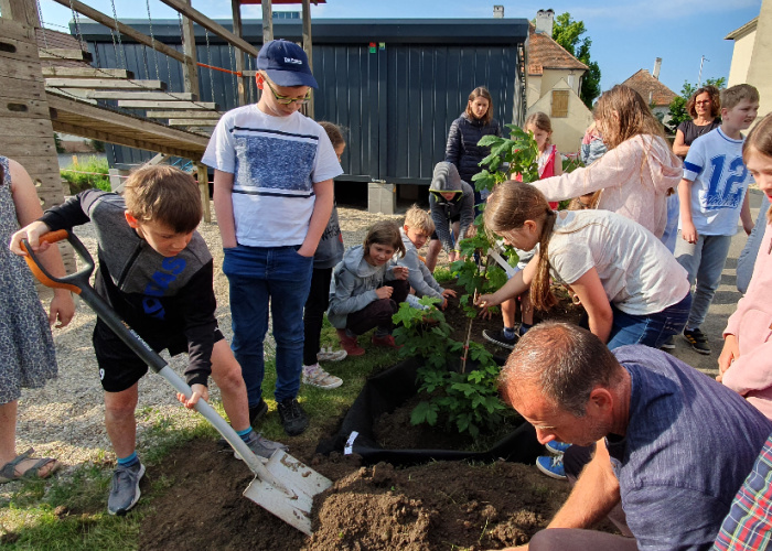 Das Glück war uns dann noch hold und unter allen Müllsammel-Partien gewannen wir vom Abfallverband sogar noch zwei Bäume, die in Zukunft dem Spielpaltz Schatten spenden. Eine sehr lustige und lehrreiche Aktion! Danke!