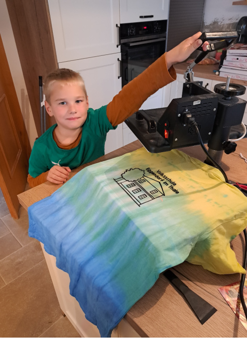 Richtig viel Arbeit hatte aber dann noch Daniel mit unseren Leiberl! Auf der Rückseite ist unser neues Schullogo wunderschön geplottet. Danke Daniel für deine Geduld! Du hast uns wirklich große Freude damit bereitet.